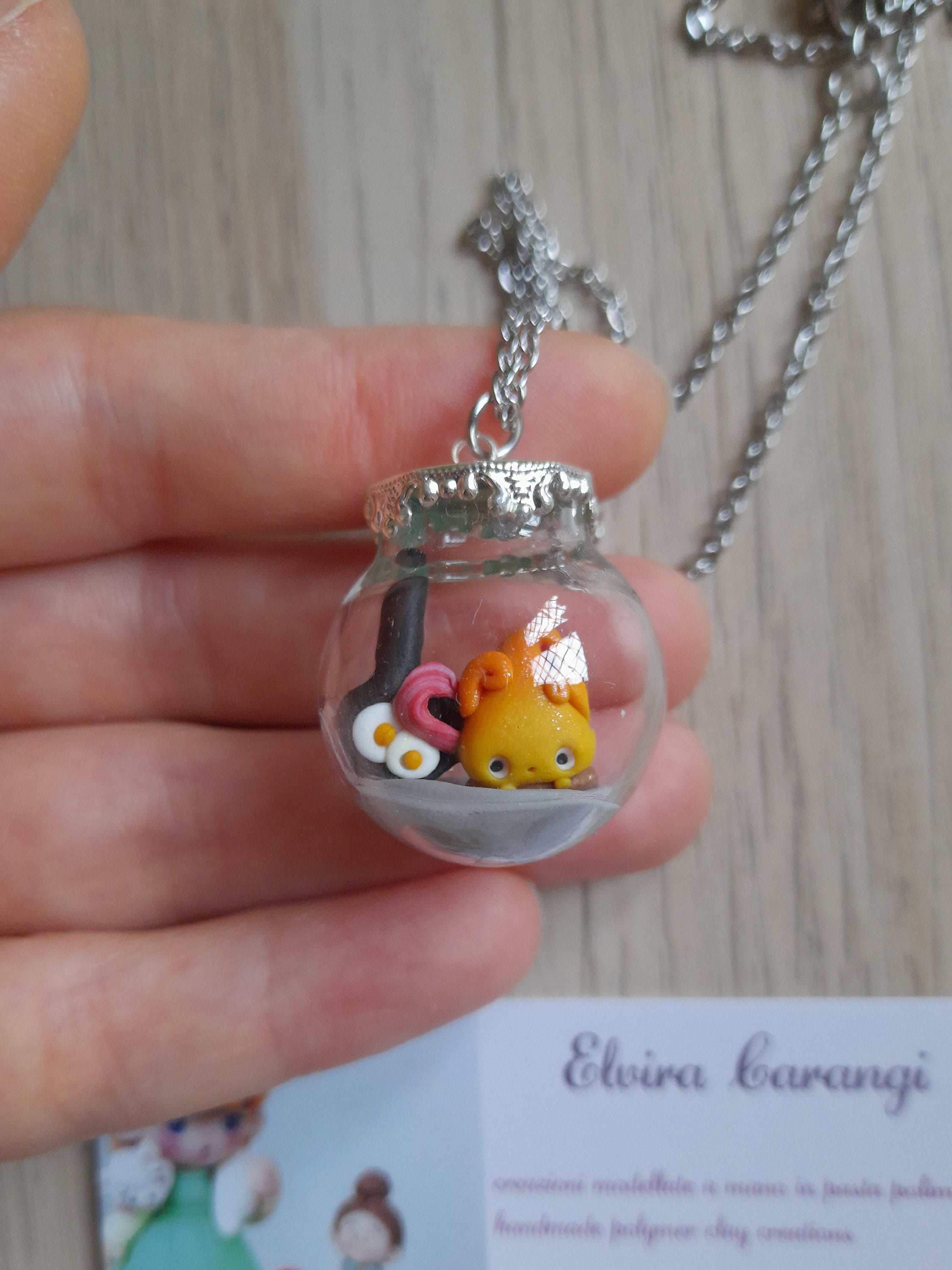 Calcifer realizzato con un'attenzione incredibile per i particolari! Fantastico ciondolo, curato nei minimi dettagli, Elvira è un'artista, si intuisce l'amore che ha per le sue creature! Super consigliata!!!
